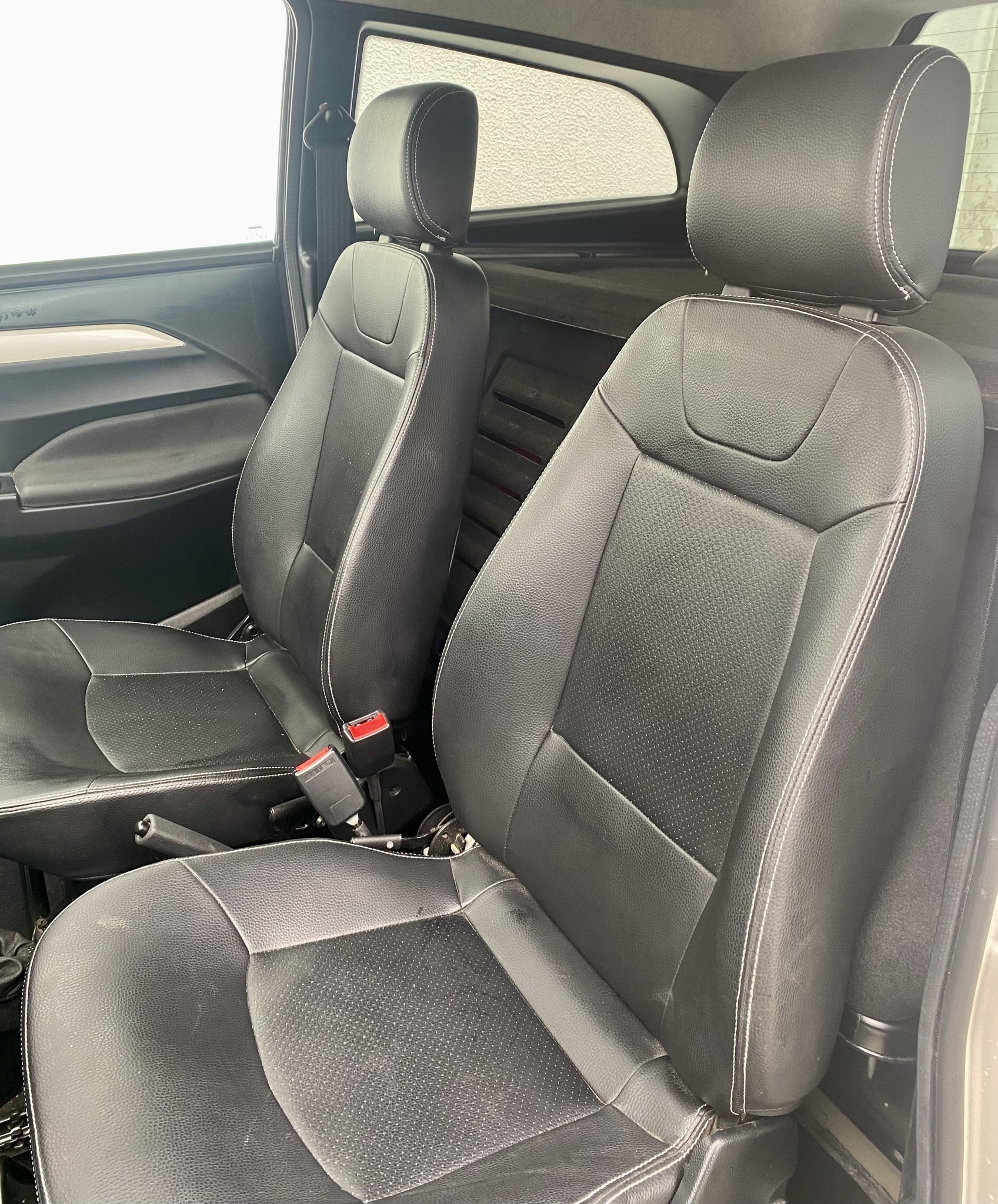 Sellerie similicuir (type TEP) noir avec surpiqûres (peut varier avec des versions bi-ton selon les finitions spécifiques)